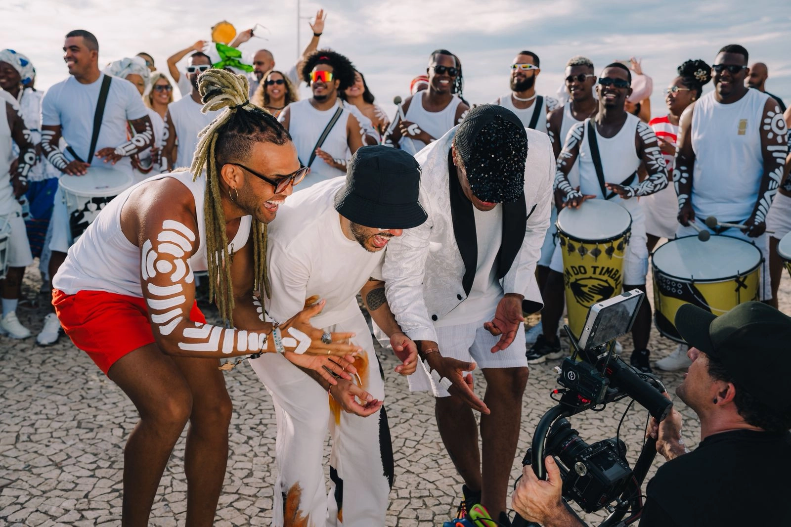 O clipe reúne um verdadeiro espetáculo cultural, com 20 baianas, 20 timbaleiros, 10 capoeiristas e personagens inusitados, como versões baianas de figuras internacionais, um robô, fanfarra, influenciadores e participações especiais. A direção é de Mess Santos, e os anfitriões da produção são Tomate, Denny e Buja.