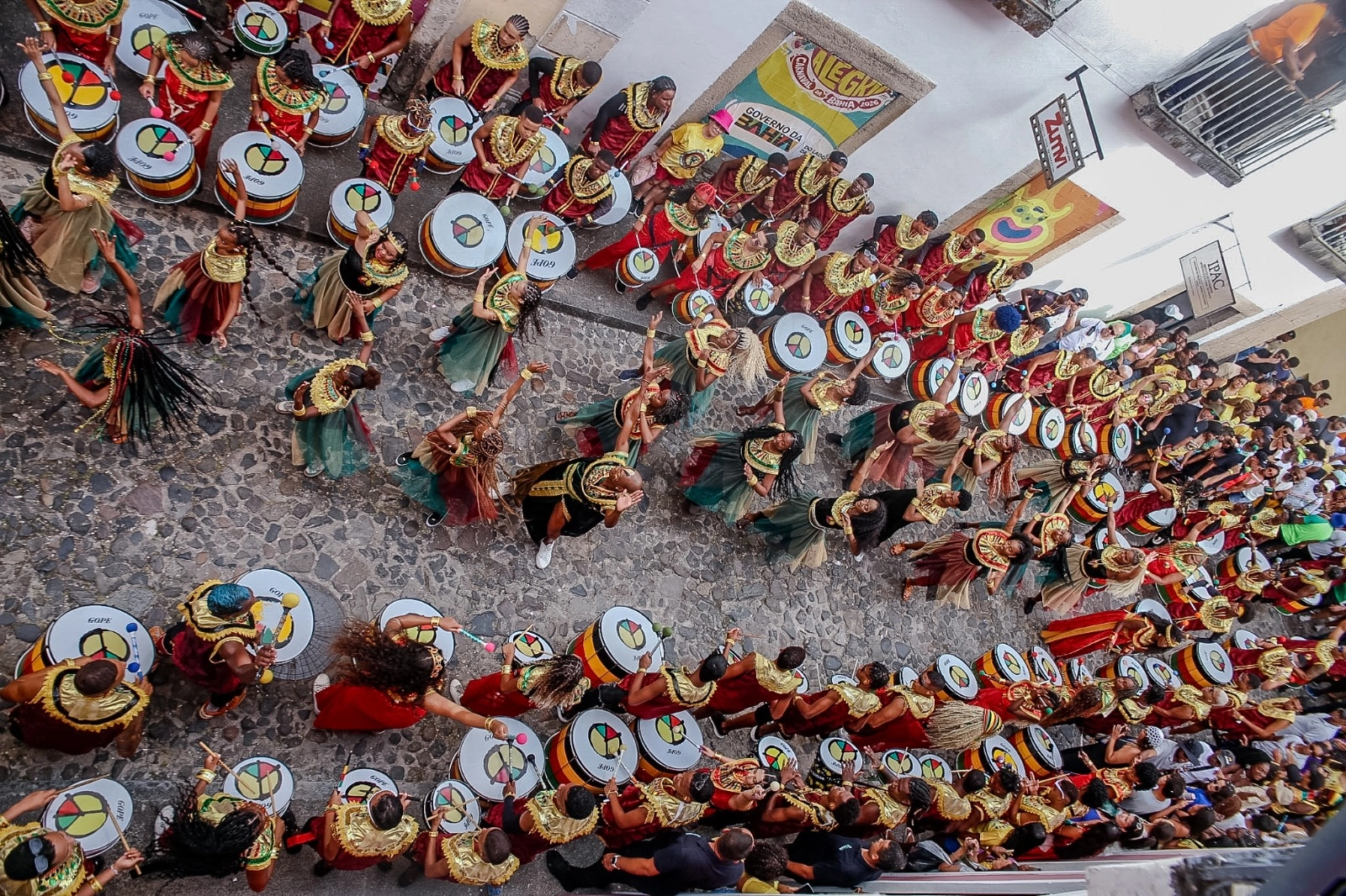 Na ala de dança, 41 integrantes se apresentaram sob o comando do professor Wagner Santana. Na percussão, 121 jovens músicos foram conduzidos pela mestrina Tainara Miliane e pelo aluno auxiliar Vinícius Borges. Os percussionistas são formados na Escola Olodum, que iniciou a apresentação na sede da instituição antes de seguir em cortejo pelo circuito.