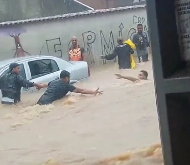 Um homem foi arrastado pela força da enxurrada em Paraty, no Rio de Janeiro, nesta quinta-feira (26), durante as fortes chuvas que atingem o município.