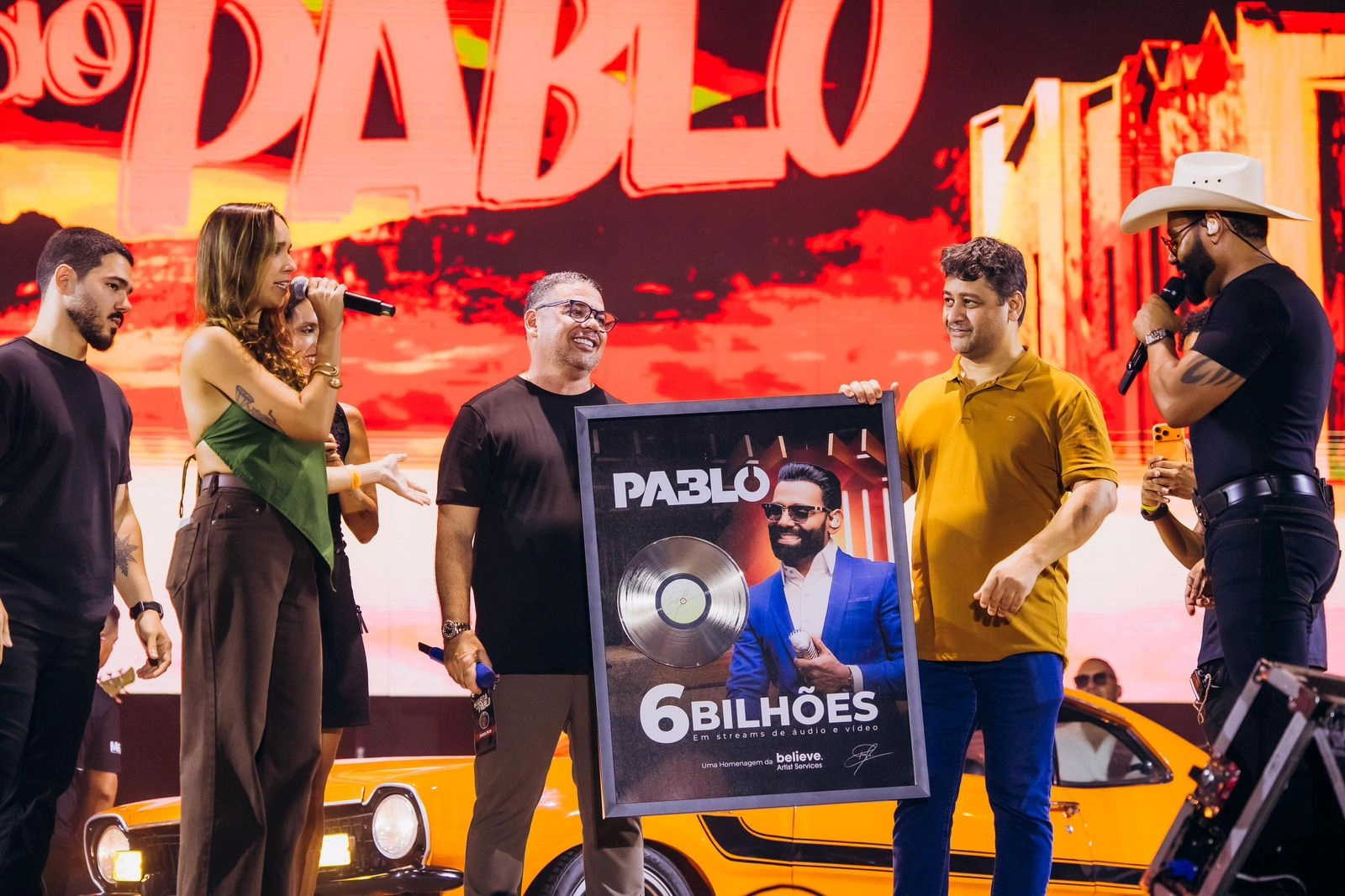 Um dos momentos de destaque da noite foi a homenagem recebida por Pablo, que ganhou uma placa em reconhecimento aos 6 bilhões de plays acumulados nas plataformas digitais, além de 253 milhões de execuções do projeto “Bodega das Bodegas”.